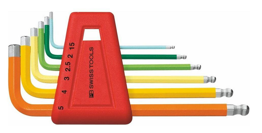 Yuvarlak Başlı renkli allen anahtar takımı, maksimum sertliği olağanüstü PB Swiss Tools özel çeliği. Yüzey nikel kaplamalı ve krom kaplamalı, kenarları hafif pah kırılmış.